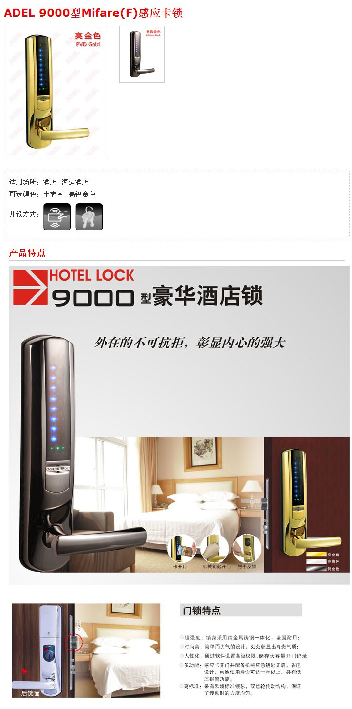 ADEL 9000型Mifare(F)感应卡锁 酒店门锁
