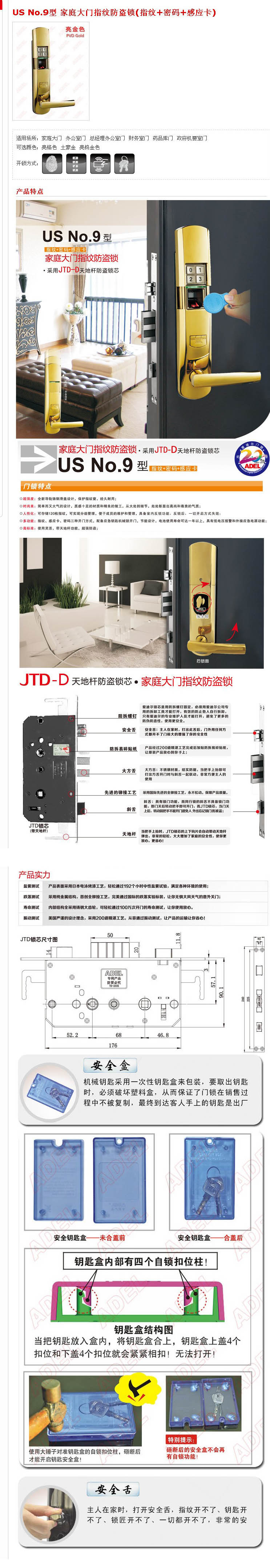 US No.9型 家庭大门指纹防盗锁(指纹+密码+感应卡)