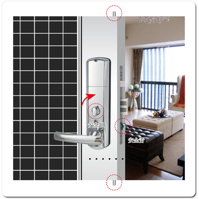 14、操作提示灯和声音提示:在使用时,会出现不同的指示灯和声音提示,凭其来判断门锁的使用情况;