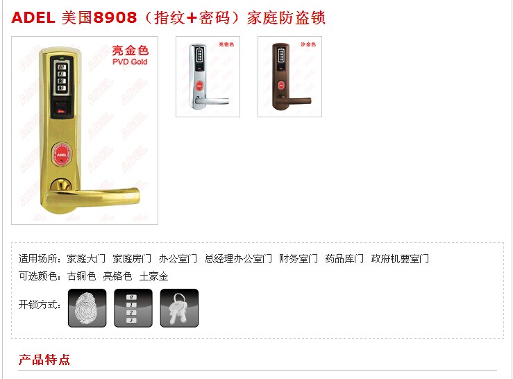 1、指纹和密码的****结合,可以使用指纹、密码、机械钥匙三种方式开门;